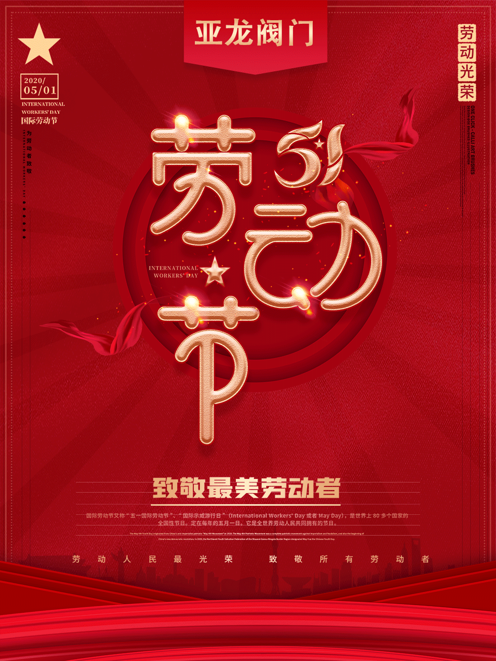 一年一度的五一小長假將至,在這里永嘉縣亞龍閥門制造有限公司全體員工向您及您的家人送出最真摯的祝福,提前祝大家勞動節(jié)快樂!